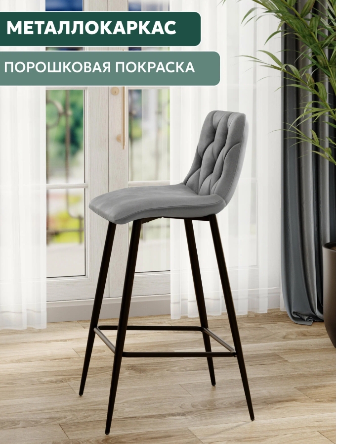 Стул барный BC-2103 (каркас черный тк.серый/ Velvet HLR-20)